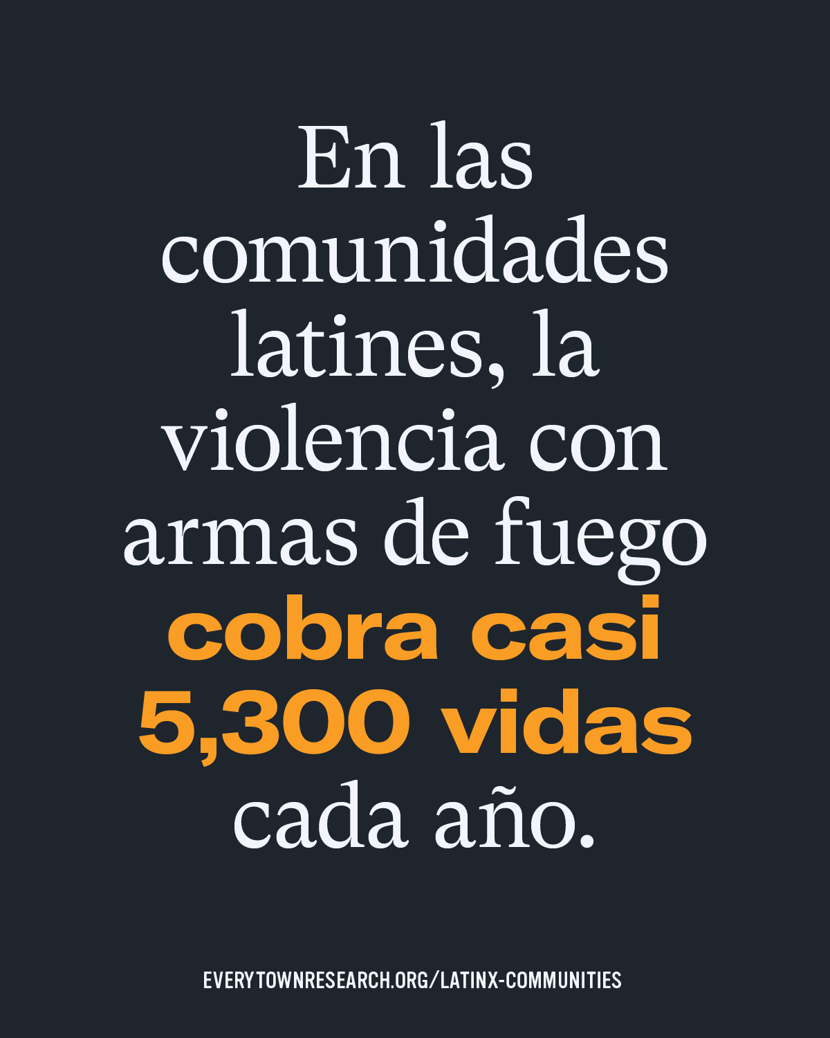 Cada año, casi 5,300 personas latines mueren de violencia con armas de fuego en los Estados Unidos (un promedio de 14 muertes por día) y 13,300 son disparadas y heridas.
